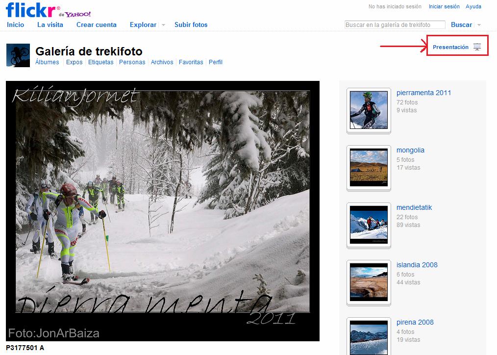 Lotura honetan dituzue Pierra Menta 2011 Argazkiak eta aurkezpen bat denez beharrezkoa da pantallaren goikaldean eta eskuman dagoen ‘Presentación’ botoia sakatzea (irudian daukazuen bezala).