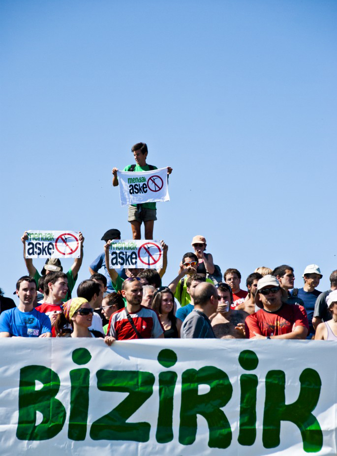 Los organizadores han recordado que “estamos a favor de la energía eólica pero creemos que los pocos espacios naturales que nos rodean no pueden ser industrializados para que las grandes multinacionales energéticas especulen exportando energía a los países limítrofes. La centrales eólicas proyectadas hoy en día en la CAV no se plantean como alternativa a la energía que nos llega de la central nuclear de Garoña, ni a los proyectos de nuevas centrales térmicas de ciclo combinado como la proyectada en Lantaron, al suroeste de Araba».