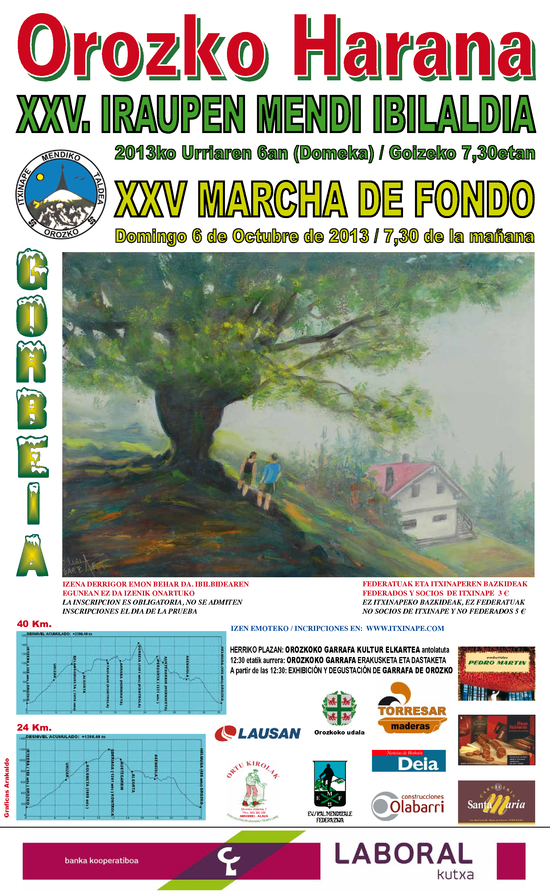 Orozkoko Garrafa Kultur Elkarteak Antolatua 12:30 etatik aurrera Orozko Garrafa Erakusketa eta Dastaketa. Martxa bukaeran partehartzaile orok opari bana jasoko du.